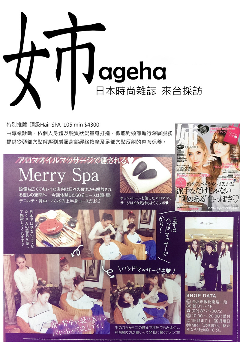 ageha雜誌 推薦~頂級Hair SPA課程